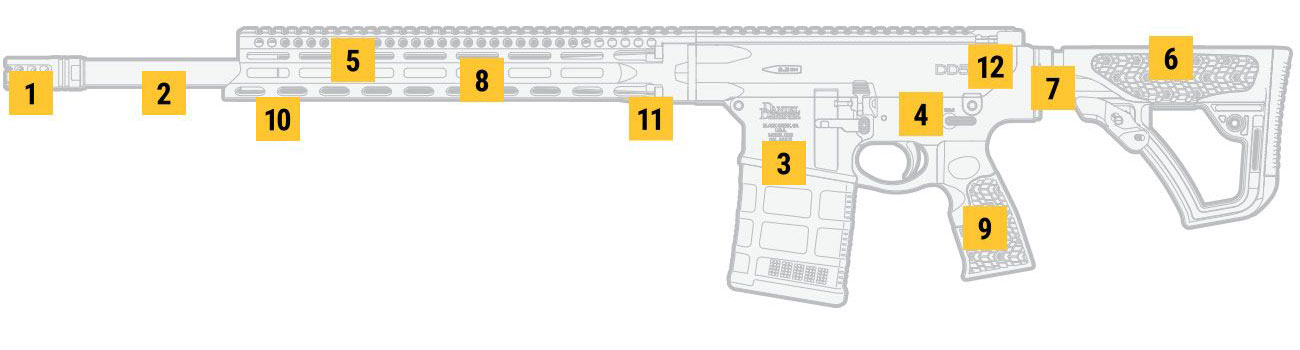 A 6.5 Creedmoor kaliberű DD5 V5 a Daniel Defense félautomata platform felhasználóinak még nagyobb távolsági precíziós képességet biztosít a mai modern távolsági lövészek számára elérhető rövid, félautomata lőfegyverrel. A 6,5 Creedmoor kiváló ballisztikai együtthatóját kihasználva laposabb röppályát és csökkentett szélsodródást kínál, olyan szinten, amely általában a sokkal nagyobb visszarúgású kaliberek számára van fenntartva. A ballisztikai hatékonyságban elért előnyök segítenek a modern lövészeknek a hatótávolságot akár 1000 méterre növelni. Ez a rendkívül pontos és tartós puska állítható gázblokkot tartalmaz, amely lehetővé teszi a megfelelő működést, akkor is, ha hangtompító kerül felszerelésre.