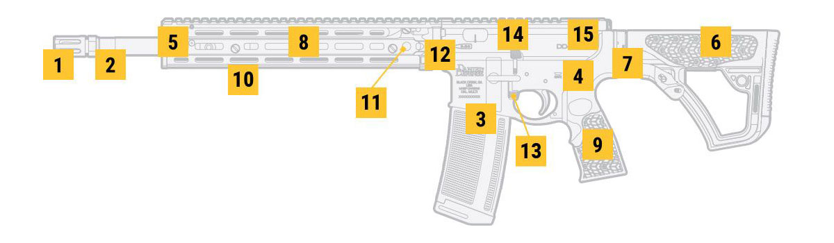 A 12,5 hüvelykes könnyű RIS III sín – amelyet a SOCOM számára kifejlesztett forradalmi RIS II kétrészes kézvédő után mintáztak – M-LOK rögzítéssel rendelkezik a könnyebb súly érdekében, miközben továbbra is M203 gránátvető rögzítést kínál. Egy 14,5 hüvelykes "Cold Hammer Forged Government Profile" csövet vesz körül. A közepes hosszúságú gázrendszer, amelyről ismert, hogy simább visszarúgásimpulzussal rendelkezik, növeli a puska pontosságát azáltal, hogy gyors, de precíz, tüzelést tesz lehetővé. Ehhez a puskához az ergonomikus Daniel Defense válltámasz és a pisztolymarkolat is tartozik.