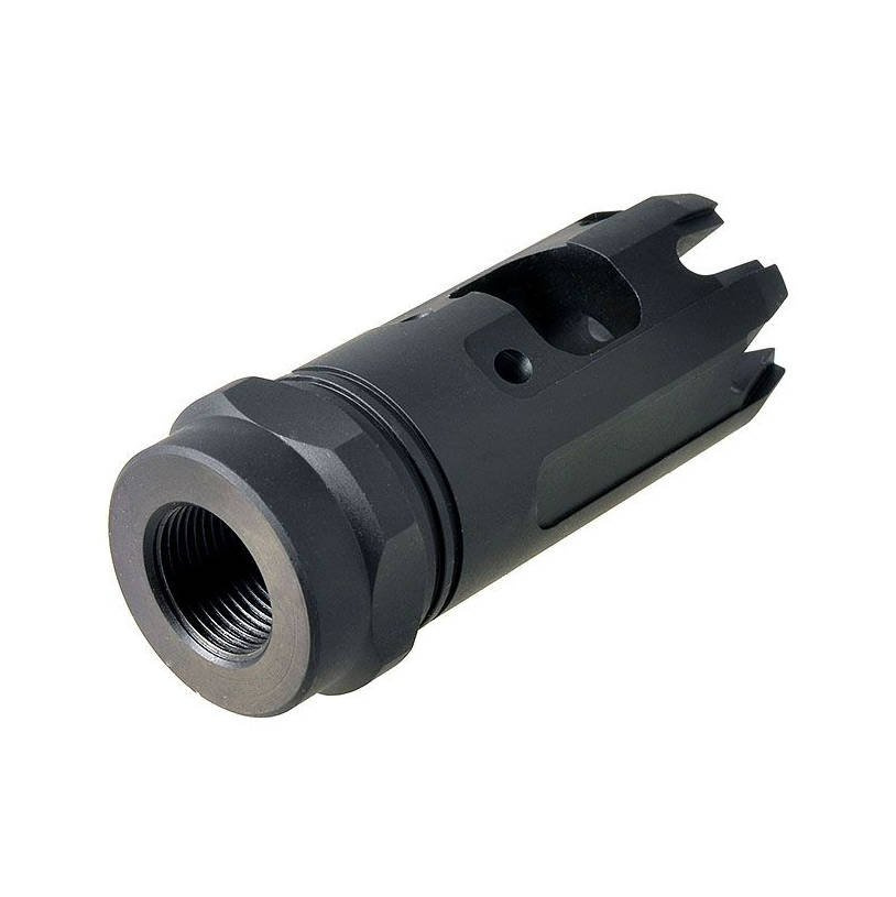 Hibrid kompenzátor, mely hatékonyan csökkenti a visszarúgást, a torkolattüzet, valamint eltereli a gázokat oldalirányba és részben felfelé. Robusztus rozsdamentes acél szerkezet foszfátbevonattal.