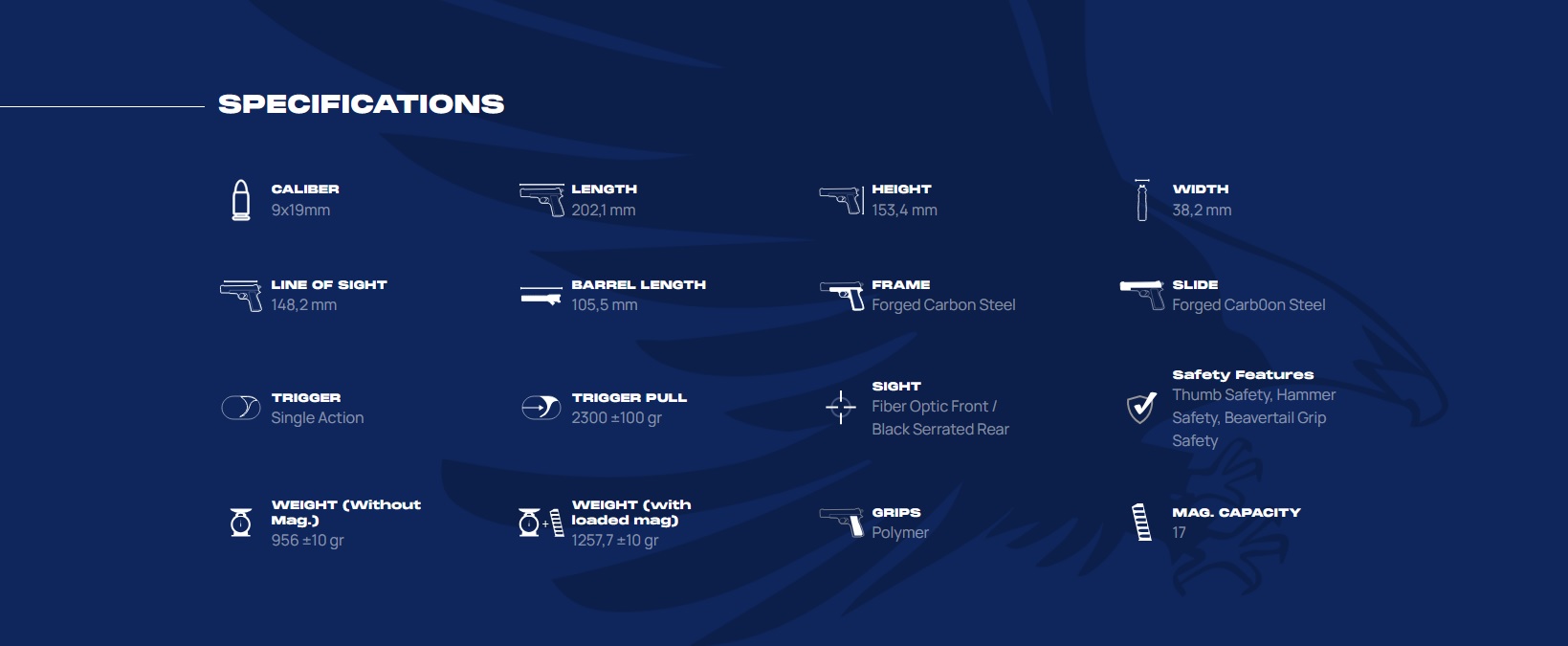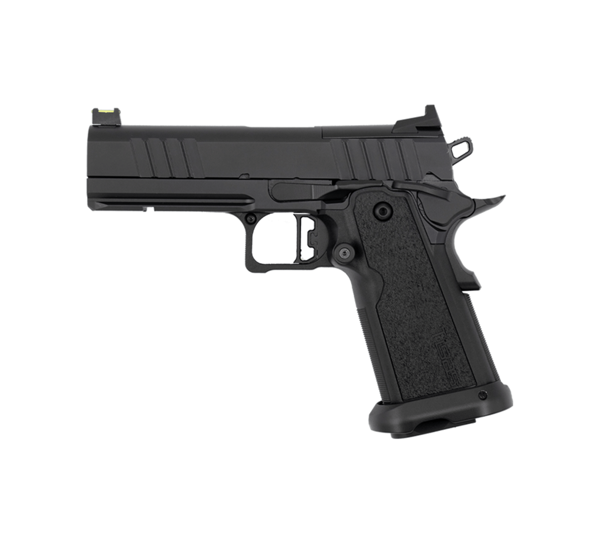 A közismert 1911-es pisztoly modernizált változata 9x19 mm-es kaliberben, két soros, 17 lőszeres tárral.