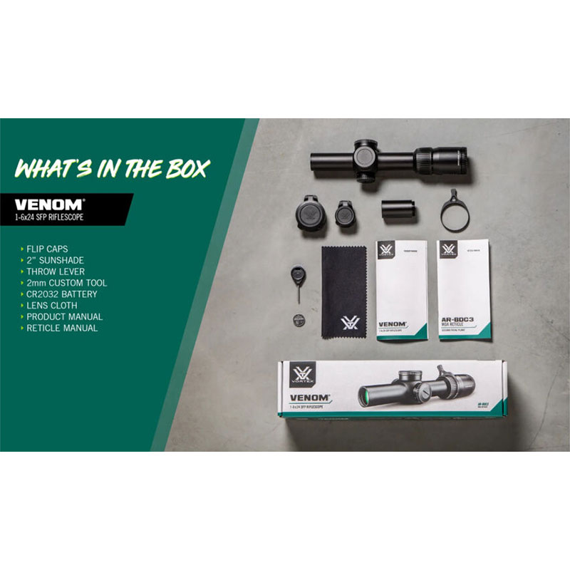 Tedd meg az első lépést a tökéletes - nagy hatótávolságú lövés leadásához a kiszemelt célpontra. A Vortex Venom céltávcső kiváló minőségű, XD™ optikai rendszerrel, strapabíró kialakítással, 1x-6x nagyítással és megvilágított AR-BDC3 szálkereszttel rendelkezik, amely gyors és pontos célzást tesz lehetővé rövid és közepes hatótávolságokon, még gyenge fényviszonyok mellett is. A texturált kialakítású torony és a nagyítás állító kar villámgyors nagyítást és finomhangolást tesz lehetővé, még kesztyűben is.